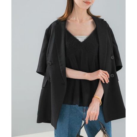 リネン混レイヤードレースキャミソール
