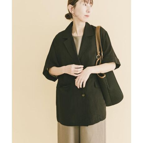 ほんのり透けるシアー素材が、季節感と抜け感を演出するドルマンジャケット。ゆったりとしたシルエットがこなれた印象を与えつつ、落ち感のある素材で女性らしいバランスに仕上げました。さらっと羽織るだけでスタイリングに奥行きが生まれ、どんなスタイルとも好相性。冷房対策や日よけにも活躍する、軽やかで着回し力の高い一着です。