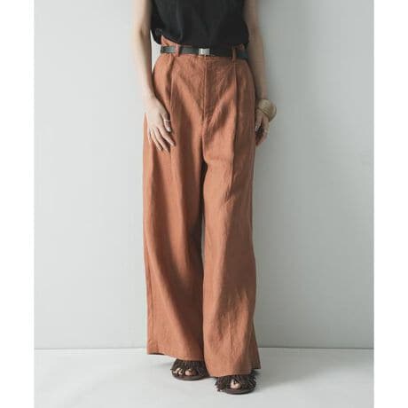 リネン100%の清涼感を纏い、リラックスした穿き心地ですっきり見せる。イージーワイドスラックス
