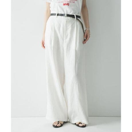 リネン100%の清涼感を纏い、リラックスした穿き心地ですっきり見せる。イージーワイドスラックス