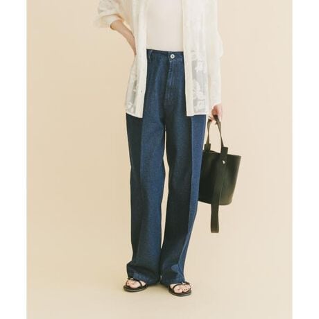 センタープレス入りで脚のラインをすっきりと見せ、スタイルアップが叶うデニムパンツ。カジュアルになりがちなデニムにきちんと感をプラスし、大人の着こなしにぴったりの一本です。ウエストは内側に調整紐を備え、見た目を損なわず快適なフィット感に。Tシャツからブラウスまで幅広く合わせやすく、オンオフ問わず活躍するアイテムです。