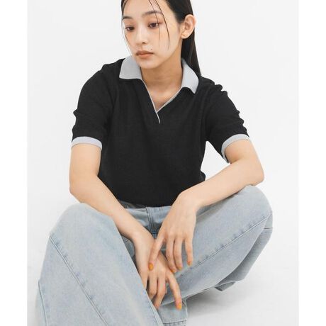 衿と、裾がレイヤードライク仕様になっており、配色デザインがアクセントになった1着。細かなメッシュ編みは涼しげな印象を与えます。程よくコンパクトな着丈はスタイルアップが叶い、首周りをすっきりとさせるキーネックの衿もポイント。大人カジュアルコーデにぴったりなアイテムです。