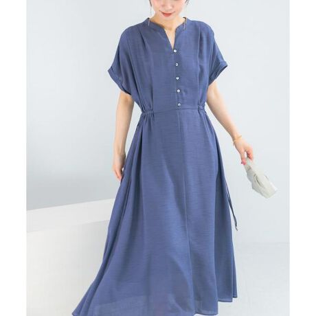 程よい透け感と凹凸のあるフシ素材で、清涼感と軽い着心地を叶えるワンピース。肌離れがよく、これからの季節にも快適に着られます。洗濯機対応でお手入れも簡単なのが嬉しいポイント。首元はキーネックでシャープな印象に仕上げつつ、ホックを閉じれば丸首でも着られる2WAY仕様。フレンチスリーブは二の腕をすっきり見せ、ウエストは総ゴム+リボンで調整可能なので、さまざまな体型にフィットします。スカート部分には裏地を施し、一枚でも安心して着用可能。ウエストマークのデザインが自然にスタイルを整え、1枚でさまざまなコーディネートに対応する、頼れる一着です。