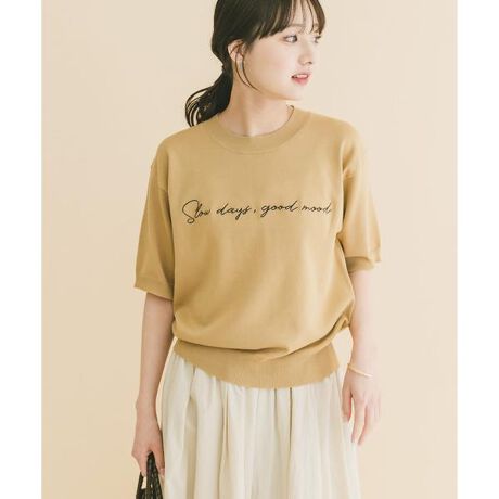 さりげないロゴデザインがアクセントになった半袖ニットは、暑くなる前の季節にぴったりの一枚。軽やかな着心地で、Tシャツよりもきちんと感があり、大人カジュアルに取り入れやすいのも魅力です。シンプルなボトムと合わせるだけでこなれた印象に仕上がり、デイリーからちょっとしたお出かけまで幅広く活躍します。
