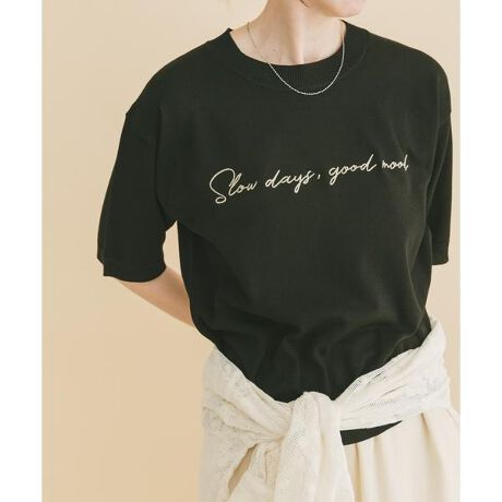 さりげないロゴデザインがアクセントになった半袖ニットは、暑くなる前の季節にぴったりの一枚。軽やかな着心地で、Tシャツよりもきちんと感があり、大人カジュアルに取り入れやすいのも魅力です。シンプルなボトムと合わせるだけでこなれた印象に仕上がり、デイリーからちょっとしたお出かけまで幅広く活躍します。