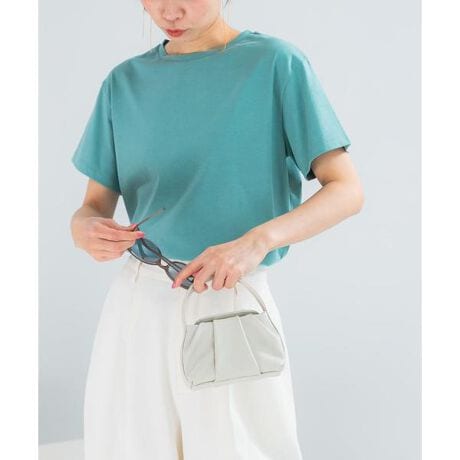 汗ばむ季節に嬉しい、接触冷感素材のカットソー。表面にはレーヨンコットン、裏面にはポリエステルを用いた生地を採用し、肌に触れた瞬間に感じるひんやりとした着心地が魅力です。ほんのり艶のある表情がカジュアルすぎず、洗練された印象へ。シルエットはすっきりと見せながらも程よくゆとりを持たせ、身体のラインを美しく見せるバランスに設計。二の腕を自然にカバーする袖丈も嬉しいポイントです。一枚でさらりと着こなすのはもちろん、ジャケットのインナーとしても活躍。オン・オフ問わず幅広いシーンで頼れる、着回し力の高い一着です。