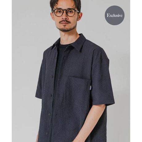 【機能的なシアサッカー素材を採用。やや大振りな左胸アウトポケットとシリコンピスネームがアクセントの別注シャツ】