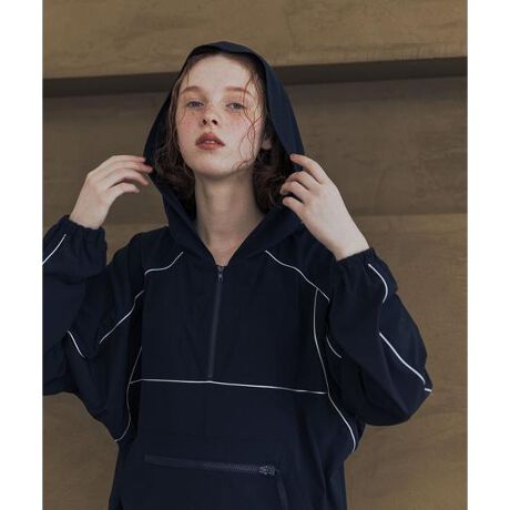 配色パイピングがスポーティなアクセントを添える。Swim URBAN RESEARCH スイム パッカブルアノラック。