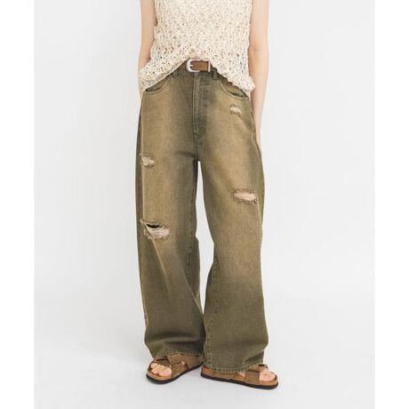 フロントとヒップの泥加工デザインが特徴的なデニム。泥加工にさらにダメージを加えることでよりヴィンテージライクさを表現しました。ワイド過ぎないシルエットはスタイルアップが叶います。身長別で選べる2サイズ展開になっており、雰囲気の異なるBLUEとKHKIをご用意しました。