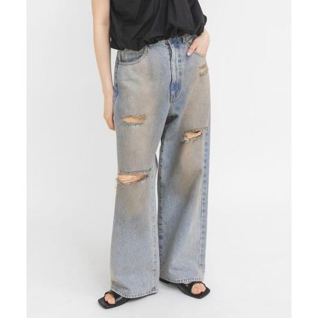 フロントとヒップの泥加工デザインが特徴的なデニム。泥加工にさらにダメージを加えることでよりヴィンテージライクさを表現しました。ワイド過ぎないシルエットはスタイルアップが叶います。身長別で選べる2サイズ展開になっており、雰囲気の異なるBLUEとKHKIをご用意しました。