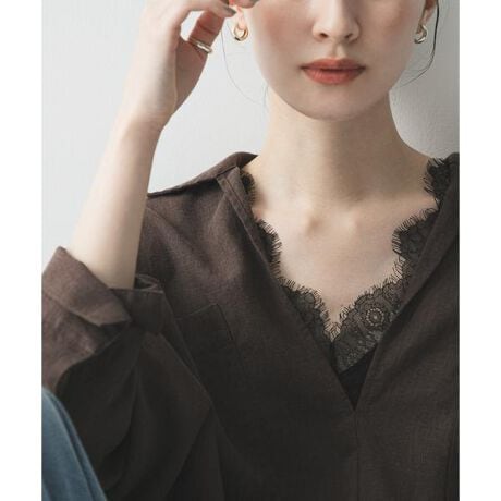 シャツやカーディガンのインナーとして、レースをさりげなく見せるレイヤードがおすすめ。