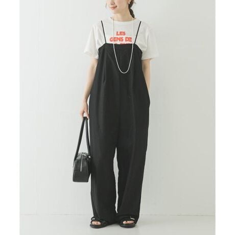 縦のラインがすっきりと際立ち、一枚で洗練された大人スタイルを叶える。ベアオールインワン。