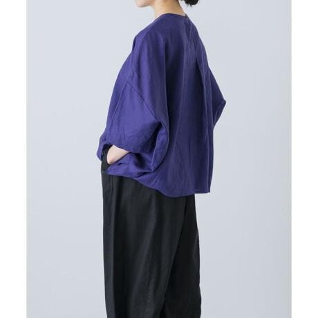 Tシャツのように気軽に着られて、品のある雰囲気を表現できるアイテムです。生地はしなやかな素材感のハードマンズリネンを使用。フランスのノルマンディ地方で収穫された原料を伝統的な紡績方法で紡ぎ、織り上げました。インナーが見える心配の無いコンパクトなクルーネックが大人に嬉しい設計。ボディはゆったりとしたストレスフリーなサイズ感。一見シンプルですが、両サイドにはスリットが入っていてバランスが取りやすいデザインです。またバックネックからタックが入れることで程よく立体的なシルエットに。こだわりのポイントが散りばめられた一品です。同素材のシリーズアイテムもぜひご覧ください。