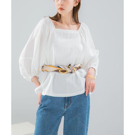 スクエアネックと、オフショルダーの抜け感を楽しめる2WAY仕様のブラウス。肩部分はゴム仕様で、自然にフィットしながら美しいラインをキープします。キュプラ混のなめらかな落ち感に、リネン特有の節がほんのり表情を添え、シンプルながら奥行きのある素材感に仕上げました。ほのかな光沢があるため、カジュアルなボトムと合わせてもラフになりすぎず、上品な印象をキープ。すっきりとしたパンツやタイトスカートと合わせるだけで、バランスよく洗練されたスタイリングが完成します。