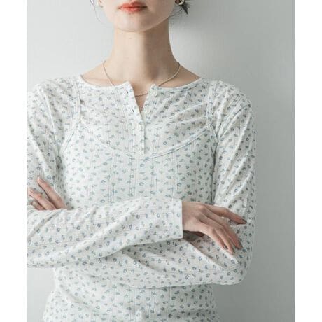 繊細なアイレットの透かし編みに、甘さを抑えた小花柄をのせた上品な一着です。柔らかな素材感が軽やかで心地よい肌触りを叶えました。