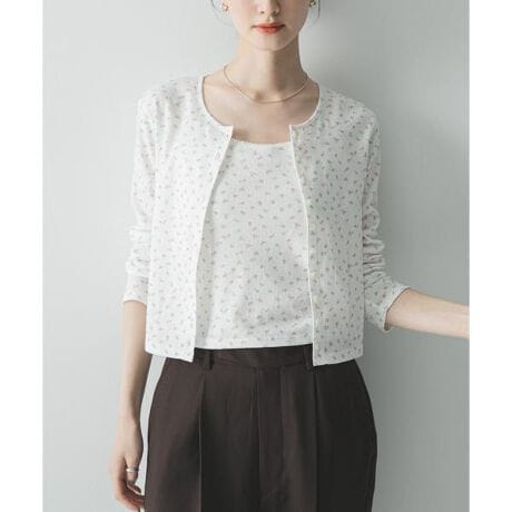繊細なアイレットの透かし編みに、甘さを抑えた小花柄をのせた上品な一着です。柔らかな素材感が軽やかで心地よい肌触りを叶えました。