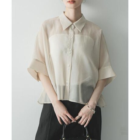 柔らかな透け感とドライな質感が、涼やかなハーフスリーブシアーショートシャツ。