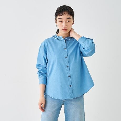 マルイウェブチャネル   /   コレックス   /   トップス   /   ブラウス   /   ライトデニムフリルネックシャツ【予約】