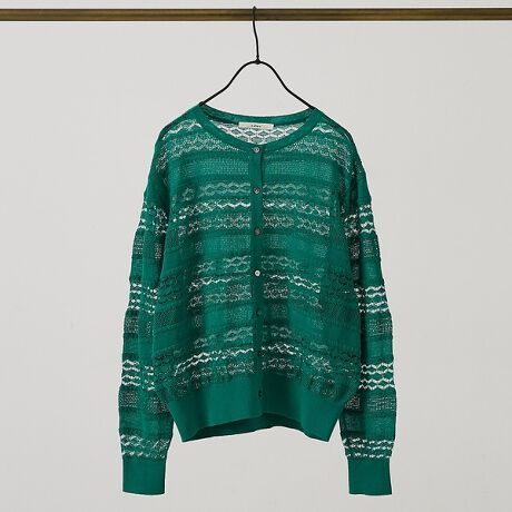 繊細な透かし編みが魅力の、ヴィンテージライクなカーディガン。