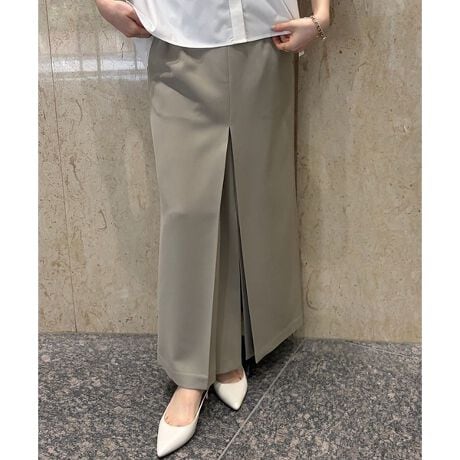 大人らしいタックタイトシルエットのスカートです。フロントにはスリットを入れ、すっきりとした印象の中に動きをプラスしています。お仕事にも重宝する洗練された雰囲気が際立ちます。セージグリーンとブラックの2色展開です。