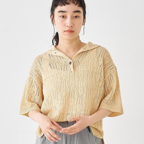 レーシー柄ニットポロ/透かし編み・サマーニット【予約】