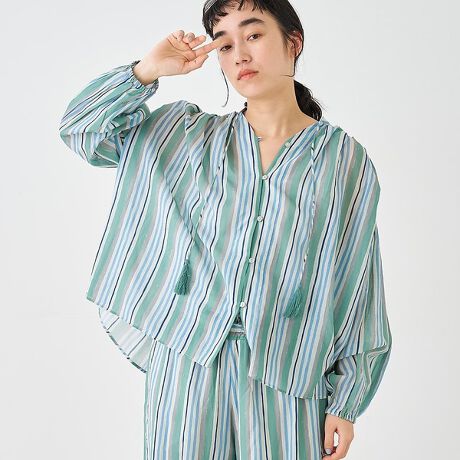 ブロックプリント ユラギ ストライプブラウス【予約】