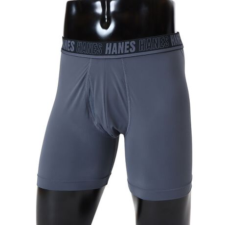 Hanes? MOVES(ヘインズ ムーヴス)は日常からアクティビティまでシームレスに活躍する高機能素材シリーズ。ムレない、スレない、動かない!Hanes?(ヘインズ)独自(特許取得)のメッシュライナー構造「トータルサポートポーチ」を採用したポーチボクサーブリーフ?。ハンモック状の空間に局部がすっぽりと包みこまれるように収まり1日中抜群の“ポジション”キープを実現し、その結果内腿との接触による擦れを防ぎ、また摩擦によって発生する蒸れも抑制。4 Way Stretch (4ウェイストレッチ)の優れた伸縮性、ナイロンベア天竺素材の優れた吸汗速乾性、接触冷感機能、「X-TEMP?(エックステンプ)」テクノロジーによるクールダウン機能を備えた、高機能素材を使用しています。X-TEMP?は日常の活動や気温の変化により肌表面から発生する水分や汗に反応し、ボクサーブリーフ内の環境を快適に調整・保持するヘインズ独自のテクノロジー。1年中「気持ちいいはき心地」を実現します。X-TEMP?モデルは前立てと底マチのパーツに、通気性に優れたメッシュ生地を採用し着用時の蒸れを軽減してくれます。着用時にめくれ上がりにくくした股下丈の設定もこだわりのポイント。さらに吸汗速乾機能、ニオイの発生を抑制する「Fresh IQ?(フレッシュ アイキュー)」加工により1日中快適。ウエストゴムに優れた伸縮性が特長の「COMFORT FLEX? WAISTBAND(コンフォート フレックス ウエストバンド)」を使用し、締め付け感を軽減します。ウエストゴムにデザインアクセントとして本体と同色のバイカラーで「HANES」と入れています。前開き仕様。