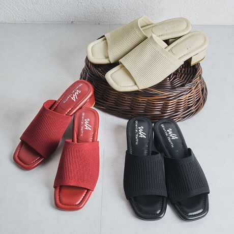 夏にぴったりのリブニット素材を使用した、足当たりがソフトなミュールサンダル。