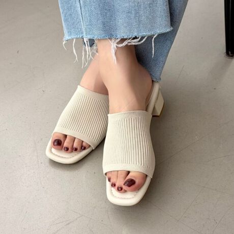 夏にぴったりのリブニット素材を使用した、足当たりがソフトなミュールサンダル。