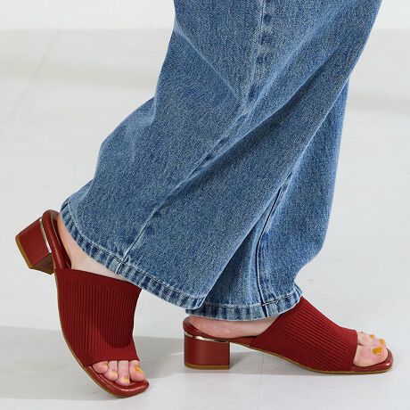 夏にぴったりのリブニット素材を使用した、足当たりがソフトなミュールサンダル。