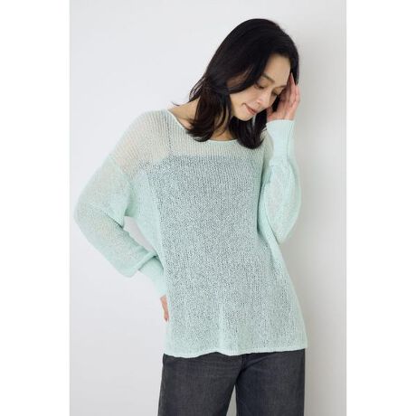■ドライタッチニット■ポイント立体的な畔編みが目をひく、存在感のあるニットトップス。編み地の表情を活かしたデザインで、シンプルながらスタイリングの主役になる1枚です。■ディテールあえてハリ感のあるペーパーヤーンを使用することで、編み目の輪郭が際立つ立体的な表情に仕上げました。畔編みの凹凸感が奥行きのある表情を生み、モードな雰囲気を演出。身体のラインを拾いすぎない立体的なフォルムは、この素材と編み地の組み合わせならではのシルエットです。ドライな質感で肌離れが良く、軽やかな着心地も魅力。■スタイリングデニムやワイドパンツと合わせたカジュアルスタイルはもちろん、スラックスと合わせてモード感のある着こなしもおすすめ。インナーにシャツやカットソーを重ねたレイヤードスタイルも楽しめます。春のスタイリングに取り入れるだけで、シーズンムードを高めてくれる主役ニットです。■生地紙とポリエステルの混紡糸で作成をしている為、カサカサとしたドライな風合いと、軽さが特徴です。透け感:編み目が粗い事による透け感あり裏 地:なし伸縮性:あり光沢感:なし[注意事項]※画像の商品はサンプルです。実際の商品と仕様、加工が若干異なる場合があります。※画像の商品は光の照射や角度、お使いのモニター環境により、実物と色味が異なる場合がございます。※着用、お取り扱いの際は、アテンションタグをご確認ください。