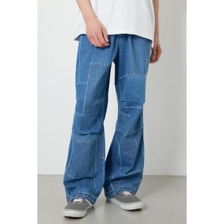 ■ポイントほつれたデニム素材をパッチワーク調にプリントしたイージーパンツです。■ディテールややゆったりとしたセミワイドシルエット。後ろウエスト部分はゴム仕様なので、着脱もしやすく、着心地もバッチリです。■スタイリング同素材のデニムシャツ(421JSR10-0741 パッチパターンデニムシャツ)と合わせたセットアップスタイルがおすすめです。■生地デニム素材を使用。■透け感:なし■裏 地:なし■伸縮性:なし■光沢感:なし※お取り扱い上のご注意加工や色味に多少のブレが生じる可能性がありますが、加工工程上避けられませんのでご了承ください。[注意事項]※画像の商品はサンプルです。実際の商品と仕様、加工が若干異なる場合があります。※画像の商品は光の照射や角度、お使いのモニター環境により、実物と色味が異なる場合がございます。※着用、お取り扱いの際は、アテンションタグをご確認ください。