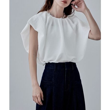 立体感と奥行きが生まれる胸元のタックによる丸みあるフォルムが、大人の適度な甘さになってくれます。