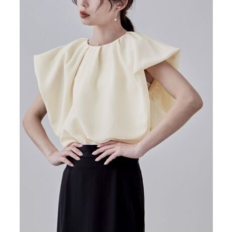 バルーンフレンチスリーブタックブラウス