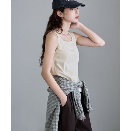 1枚でもトップス見えするうえ、ジャケットや羽織りの下に着ても洒落感をしっかり残せるタンクトップ。