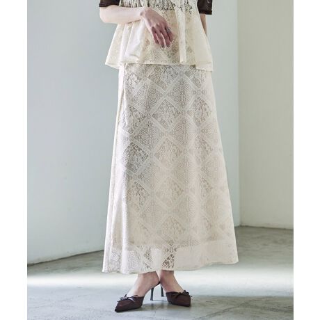 ヴィンテージ感のあるクロシェレースをたっぷり使用したナロースカート。
