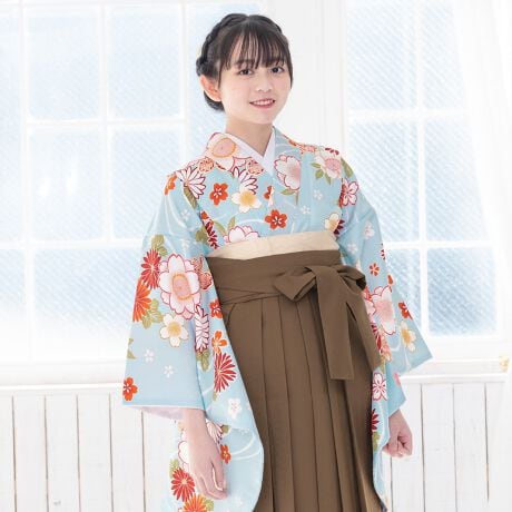 袴は、シンプルな無地袴です。中仕切りがない行灯袴ですので、洋服のスカートと同じようにお召しいただけます。