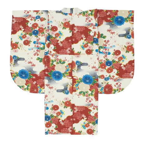 ※着物の柄部分は大きな生地を使用して作られておりますので、色や柄の出方、模様の配置等が画像と異なる場合がございます。