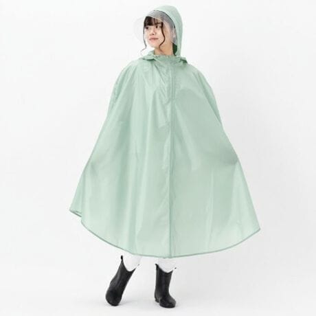 【自転車通勤の強い味方】ヘルメット対応フードと前かご丸ごとカバーで、雨の日も安心。【撥水加工で雨をはじく】裏面ポリウレタンコーティングが雨粒をしっかりはじき、濡れを気にせず走れる快適さ◎【前かごまで包む安心】自転車の前かごまですっぽり包み込む広いシルエットで、雨の日の荷物もしっかり守る♪【ヘルメットもすっぽり】ヘルメットを装着したままかぶれるフード設計で、雨の日の自転車通勤もストレスなし!【首元まで自在にフィット】フード口の絞り調節と首元ファスナーで、顔まわりのフィット感を思いどおりに設定可能。【夜道も光って安全】リフレクター付きで夜間の自転車走行中も光を反射し、暗い道での視認性をしっかり確保〇