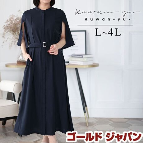 【大きいサイズ】 ケープスリーブベルトワンピース 大きいサイズ レディース ワンピース ケープ