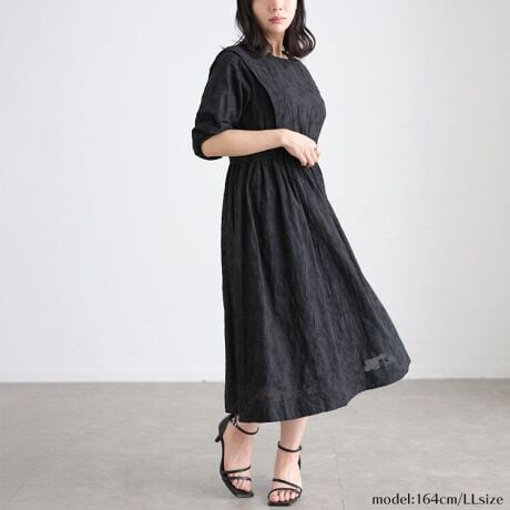 花刺繍あしらわれたコットンワンピースです。肩にかけて施されたタックが上半身をほっそりと見せてくれて着痩せ効果を演出。適度にふんわり広がるパフスリーブが二の腕カバーをカバーしてくれます。春夏に嬉しいコットン素材で肌にも優しく、着心地も抜群です。同色の糸で施された花刺?が可愛らしい印象を演出してくれます。