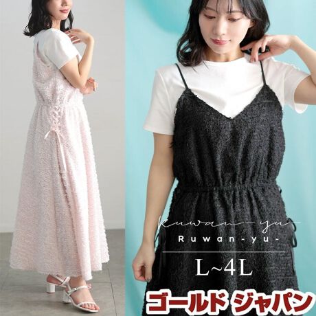 【大きいサイズ】 シャギー調サイドリボンキャミワンピース 大きいサイズ レディース ワンピース