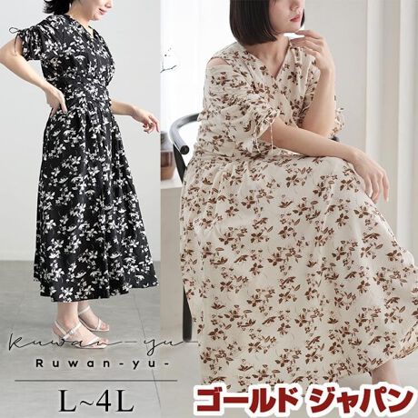 マルイウェブチャネル   /   ゴールドジャパン   /   ワンピースドレス   /   ワンピース   /   【大きいサイズ】 レトロフラワーウエストタックワンピース 大きいサイズ レディース ワンピース