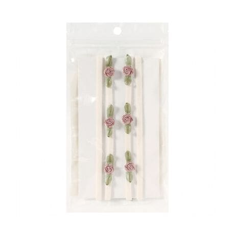 華奢な2本使いのスパゲティストラップにローズモチーフをあしらったロマンティックなデザイン。ゴールドの金具がアクセントに。