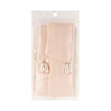 サテンリボンにパールモチーフをあしらった大人フェミニンなデザイン。
