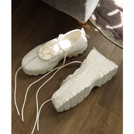 スニーカーの履き心地と、メリージェーンの女性らしいシルエットを掛け合わせた注目のデザイン!
