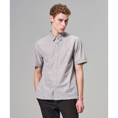 シンプルなボックスシルエットの半袖シャツ。レギュラーカラーでキチンと見えでラフになりすぎない印象。裾サイドにスリットあり。