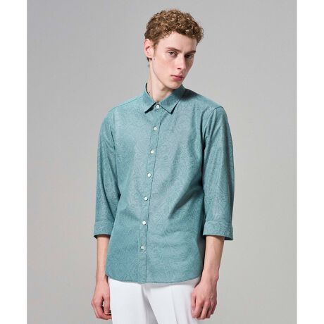 ヨシタレース 7分袖レギュラーカラーシャツ