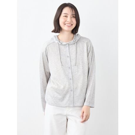 [型番:6251766]フードがアクセントのシアージャージーカーディガン。薄手ニットのような編地のシアージャージー素材で涼しげな印象、肌触りも良くサラサラしていて着心地抜群です。カジュアルなパーカーでありながら、洗練された印象を与えます。ハリ感のあるボトムスを合わせるとメリハリの効いたコーデに。ワンピースやスカートの上にさらりと羽織れば、カジュアルダウンしすぎずに女性らしいスタイルが楽しめます。