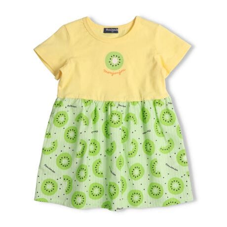 ポコポコと凹凸感のある夏らしいサッカー素材のトップスにスイカとキウイの総柄がプリントされたスカートの切替デザイン。綿100%でギフトやプレゼントにもオススメ!【アイテム】トップス シンプル ガーリー フェミニン カジュアル お洒落 オシャレ かわいい 可愛い 普段着 デイリーウェア お出かけ着 お外着 お外遊び着 子ども こども 女児 女の子 ガールズ キッズ ベビーサイズ トドラーサイズ 幼稚園 保育園 小学校 通園 通学 小学生 2026年春夏物新作 丸高衣料 すいか 西瓜 果物 ムージョンジョン コットン100% 綿100%